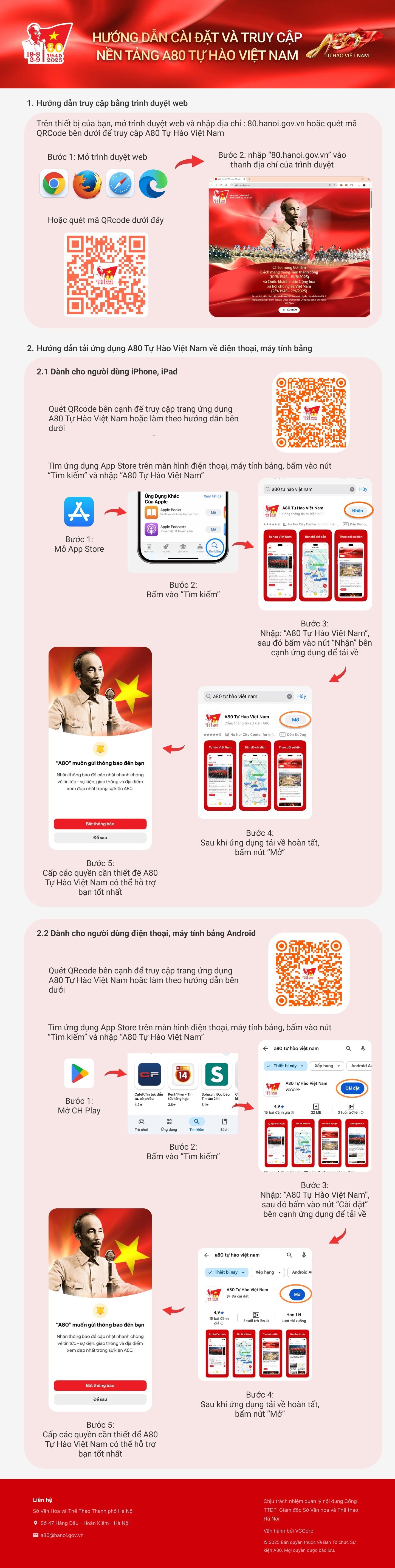 Nền tảng số “A80 - Tự hào Việt Nam” tại địa chỉ a80.hanoi.gov.vn kèm ứng dụng trên điện thoại để phục vụ người dân.